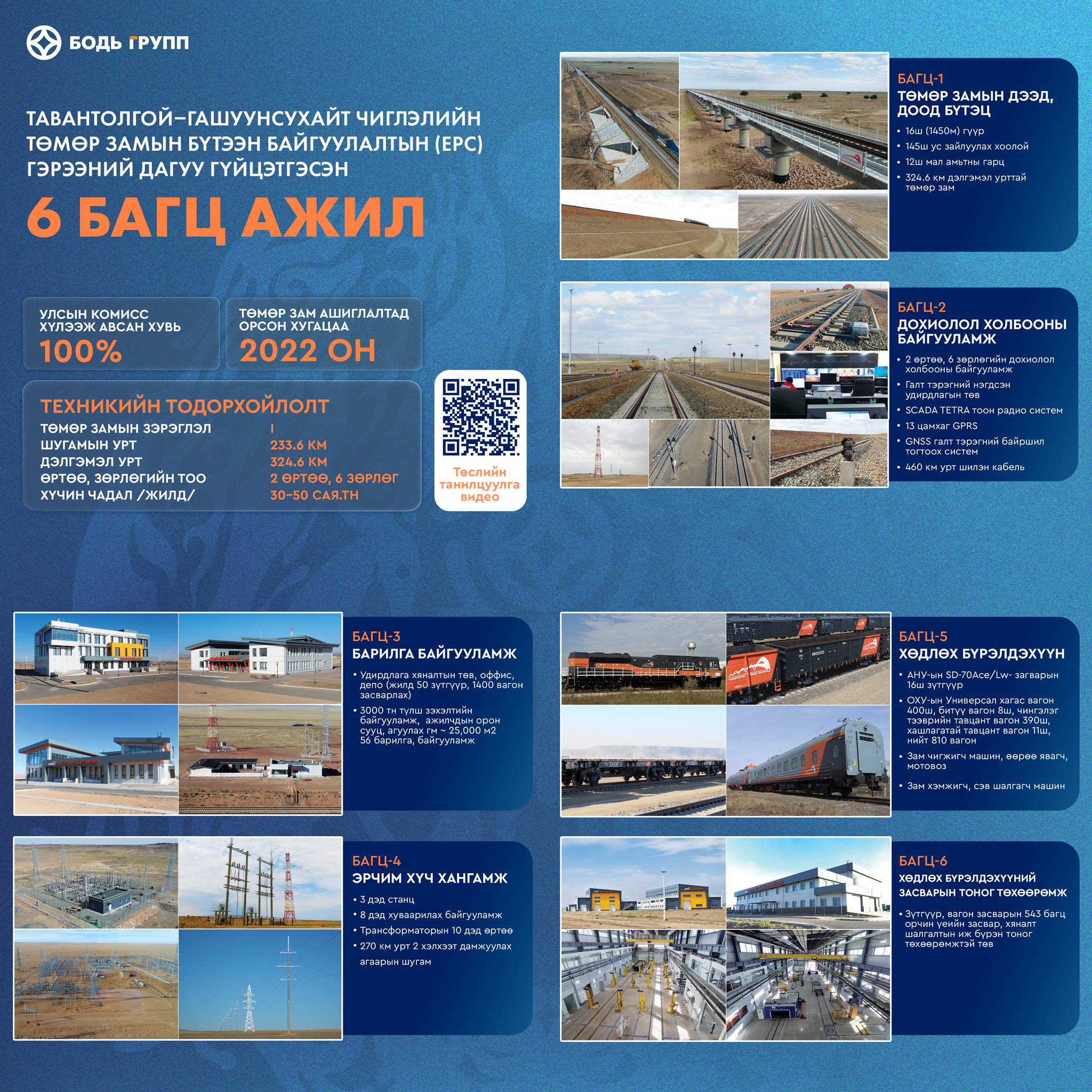 Тавантолгой–Гашуунсухайт чиглэлийн төмөр замын бүтээн байгуулалтын (EPC) гэрээний дагуу гүйцэтгэсэн 6 БАГЦ АЖИЛ